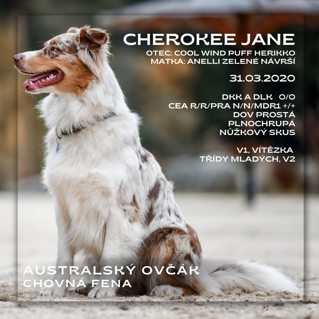 Měl se jmenovat Anděl. Pozor jen kvůli vzhledu - red merle pejsek s modrýma očima. dlouhým ocáskem a krásnou maskou. Zdravě zlobivý, běhavý a hravý. Při kontaktu jemný a tulivý. Barva RED MERLE, částečně modré oči i v dospělosti (vysoká pravděpodobnost).